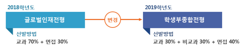 전년도 입시결과 수시 2018학년도 - 글로벌인재전형(2019 학생부종합전형) 첨부파일2018학년도_글로벌인재전형.pdf(56.7K)2018학년도_글로벌인재전형.xlsx(11.9K) 2018. 4. 2조회수8,203 2018학년도 - 학생부교과전형목록2018학년도 - 사회기여 및 배…