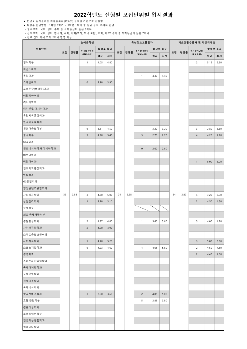 전년도 입시결과 수시 2022학년도 - 정원외(농어촌_특성화_기초생활)전형 첨부파일전년도 입시결과 정원외80.pdf(56.2K) 2022학년도 - 정원외(농어촌_특성화_기초생활)전형 2022. 4. 7조회수5,839 2022학년도 - 체육경기실적우수…목록2021학년도 - 일반고교과전형