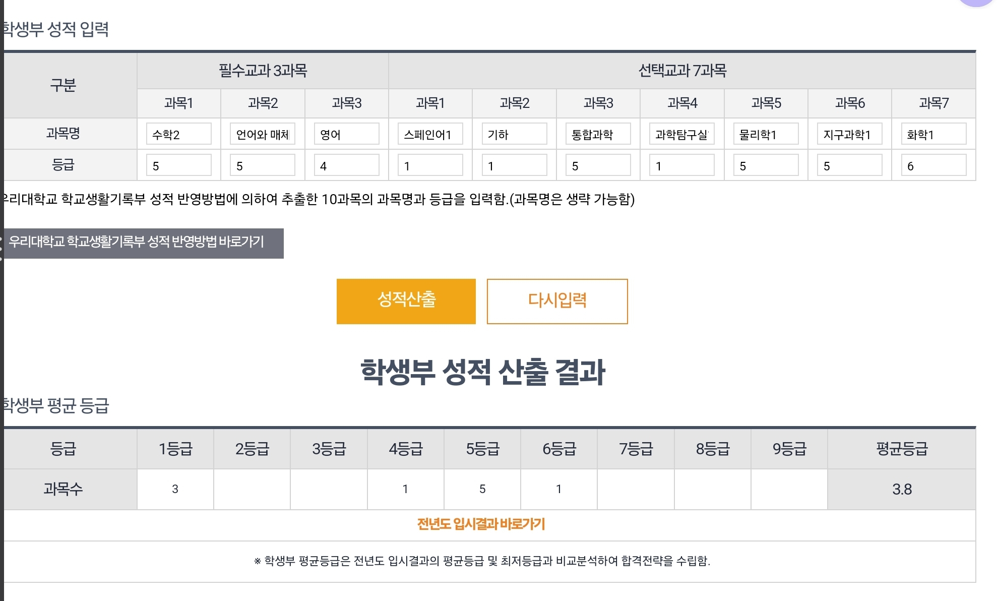 입시 Q&A 수시 수시 계산 질문 부산외대 계산 방법중에, 진로선택과목 2개까지 반영된다고 봐서, 기화와 과학탐구실험 두개를 A로 맞아 1을 넣었습니다. 저렇게 계산해도 되는걸까요? 익명2025. 3. 11조회수1,312 1 관리매니저 2025. 3. 11 안녕하세요. 부산외국어대학교 입학관리팀입니다. 네 맞습니다. 진로 선택 과목은 최대 2과목 반영가능하며 성취도 A의 경우 1등급으로 반영됩니다. 감사합니다. 안녕하세요. 부산외국어대학교 입학관리팀입니다. 네 맞습니다. 진로 선택 과목은 최대 2과목 반영가능하며 성취도 A의 경우 1등급으로 반영됩니다. 감사합니다. 특수외국어 더 많이 언제 생기나요…목록학점삭제수정