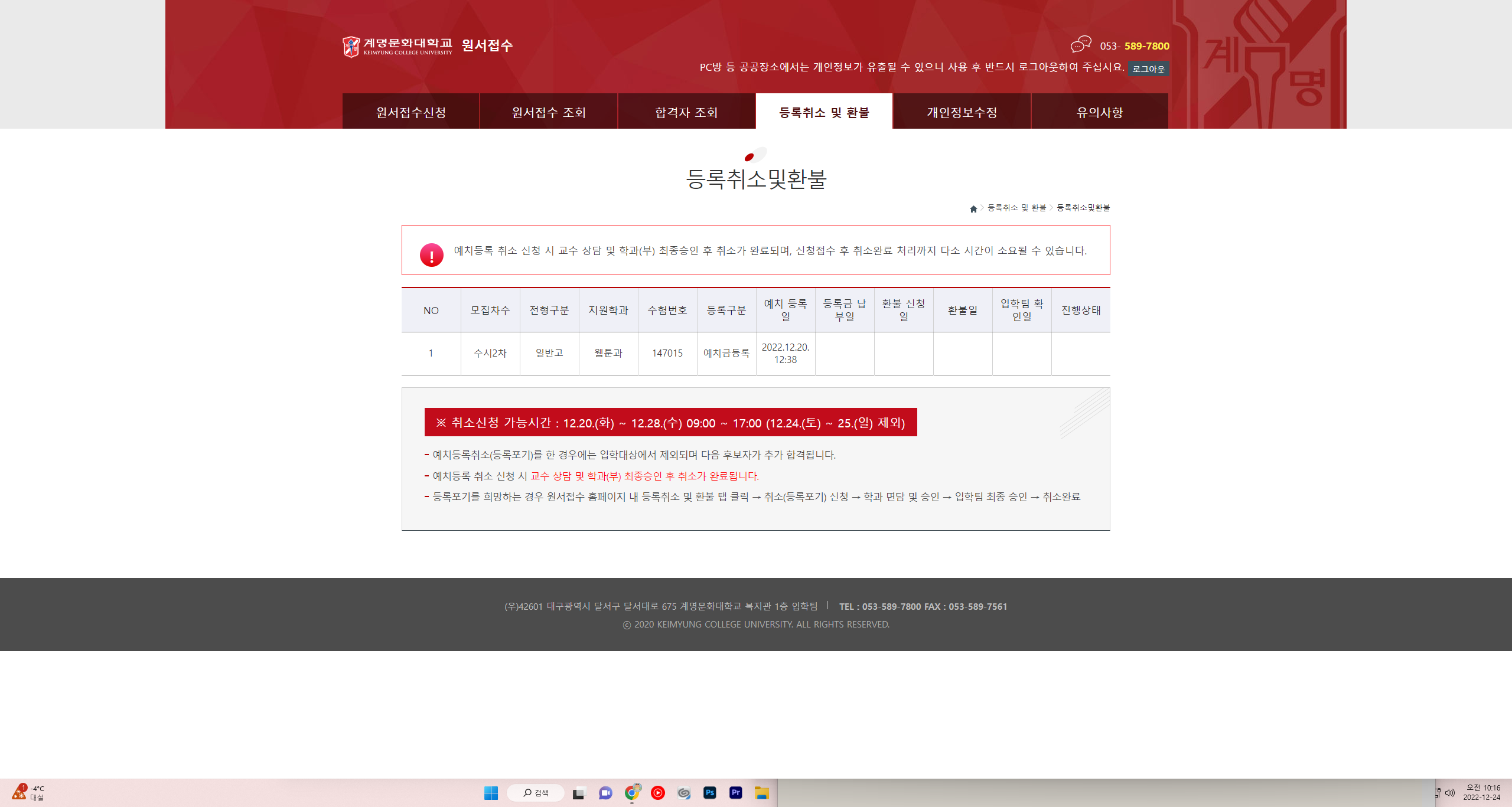 오늘 12까지 등록이 마감인데 타대학 예치 등록이 오늘까지는 취소가 불가합니다.