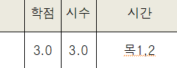 2. 2번째 사진처럼 시간이 목1,2 면 1주일에 목요일 2시간 수업이 있다는거 맞나요?