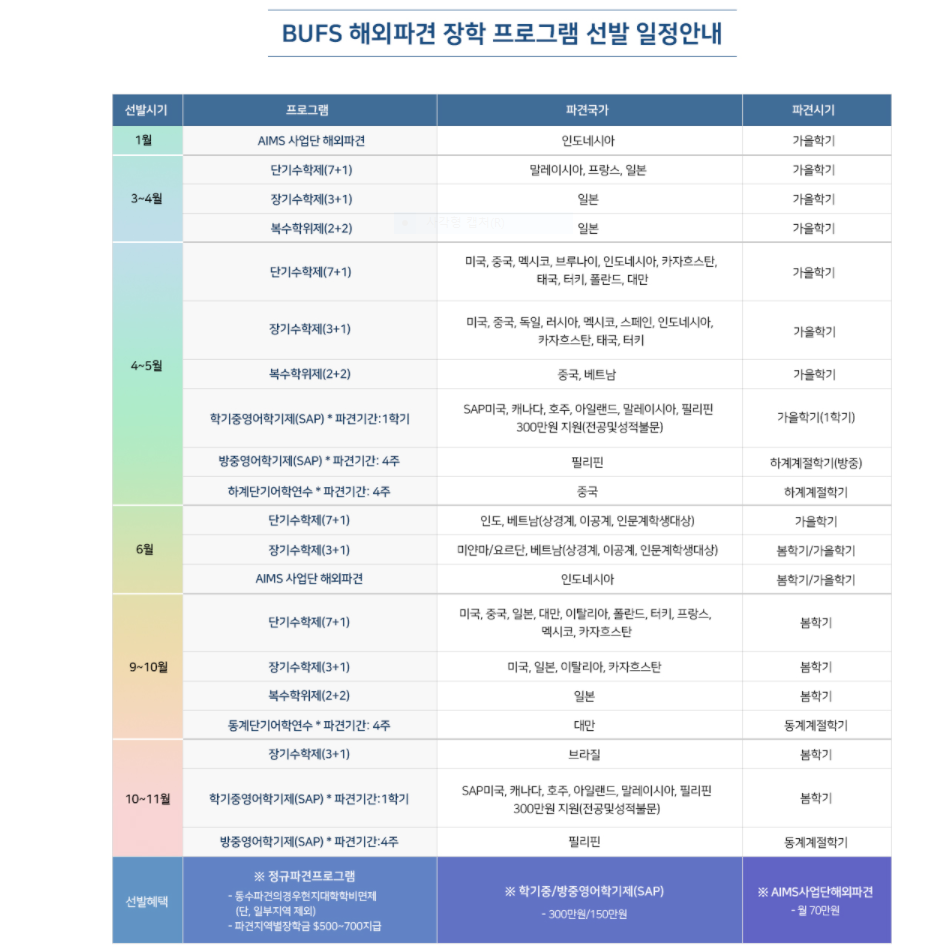 등록되어있는 해외파견프로그램 시기별 일정을 봤는데