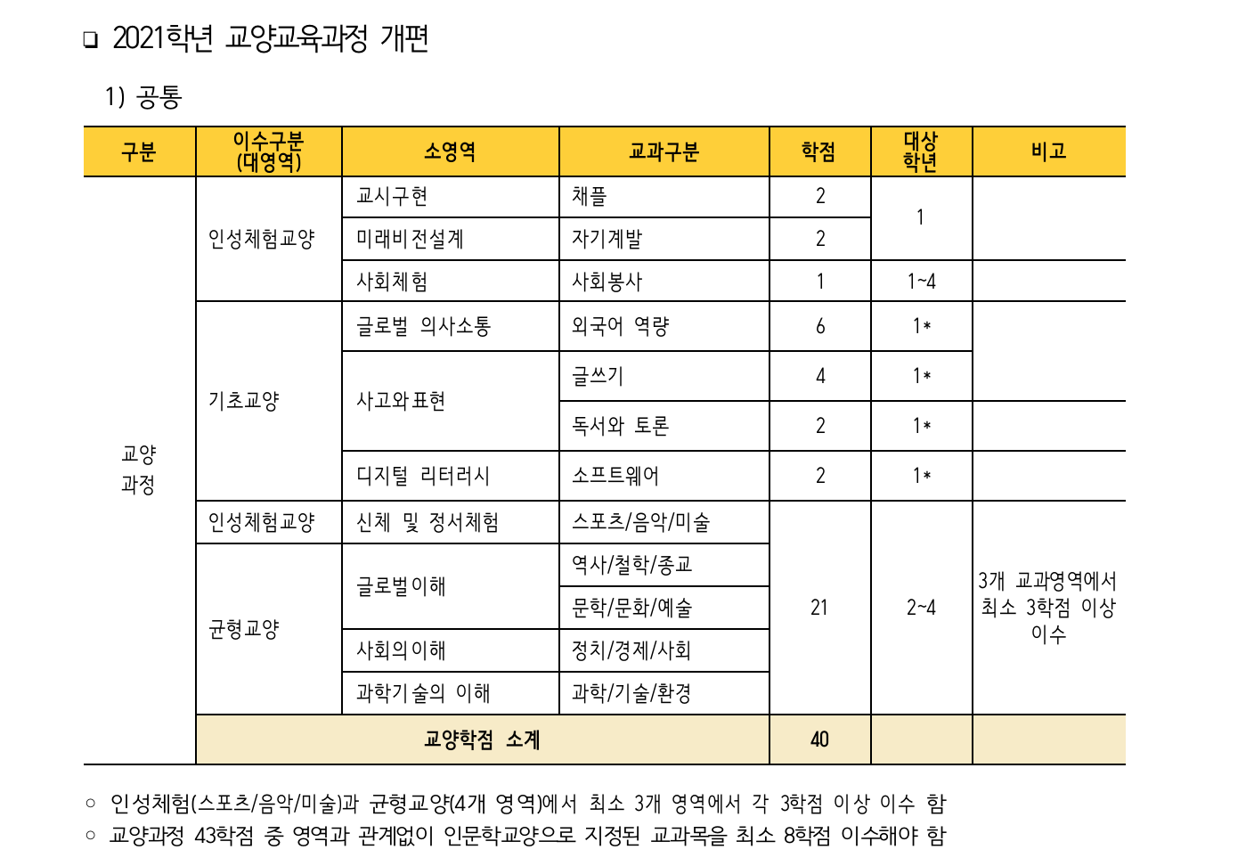 편입 후에 전공수업과 융합모듈 말고 교양수업도 필수적으로 들어야하는게 있나요?