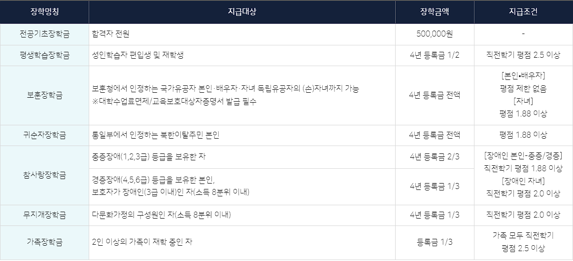 ※편입생에게는 전공기초학습장학금이 지원됩니다. (2025학년도 편입생 500,000원)