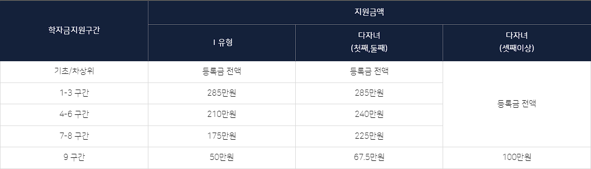 지원대상 학자금 지원구간 및 최대 지원 가능 금액은 ‘25년 정부예산(안) 기준으로 변경될 수 있음