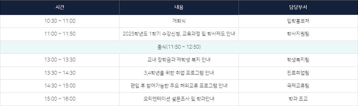 오리엔테이션 일정표 및 주요내용
